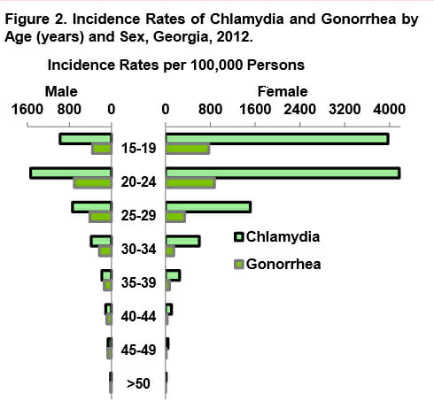 The state is ranked seventh for Gonorrhea infections, and approximately 115 people per 100K in the Atlanta area are infected, which is just slightly under the national average of almost 124 people. Fulton County is more than double the national average at 225 people, according to the Health Department.